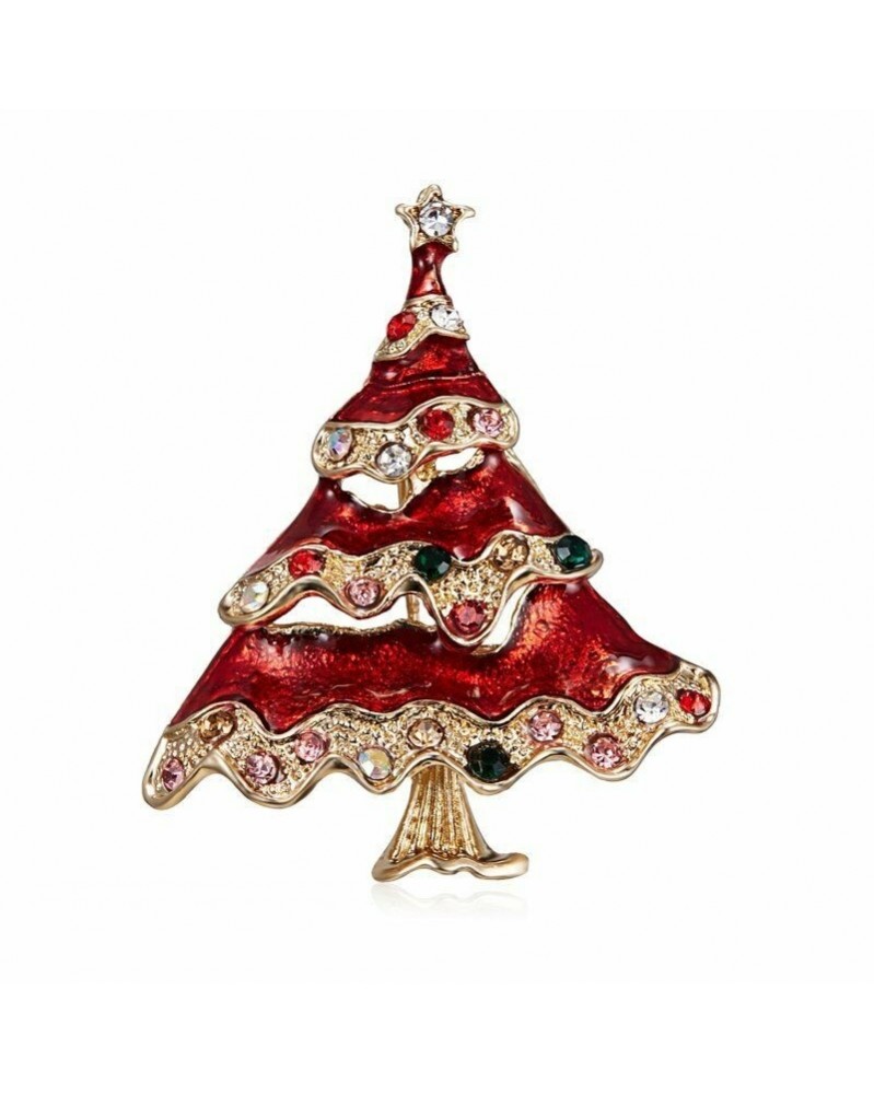 33-karácsonyfa piros - Karácsonyi Mikulás kristály strasszos kalap fa bross tű varázsa karácsonyi party