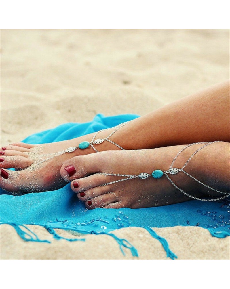 * 14 - Forró Boho Tengeri csillag türkiz gyöngyök Teknős bokacipő Strand szandál boka karkötő