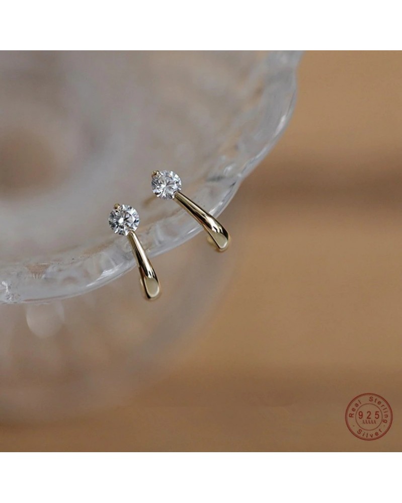 Drágakő színe: fülbevaló - 925 ezüst európai egyszerű kristály íves fülbevaló női punk hip -hop party 14 k arany