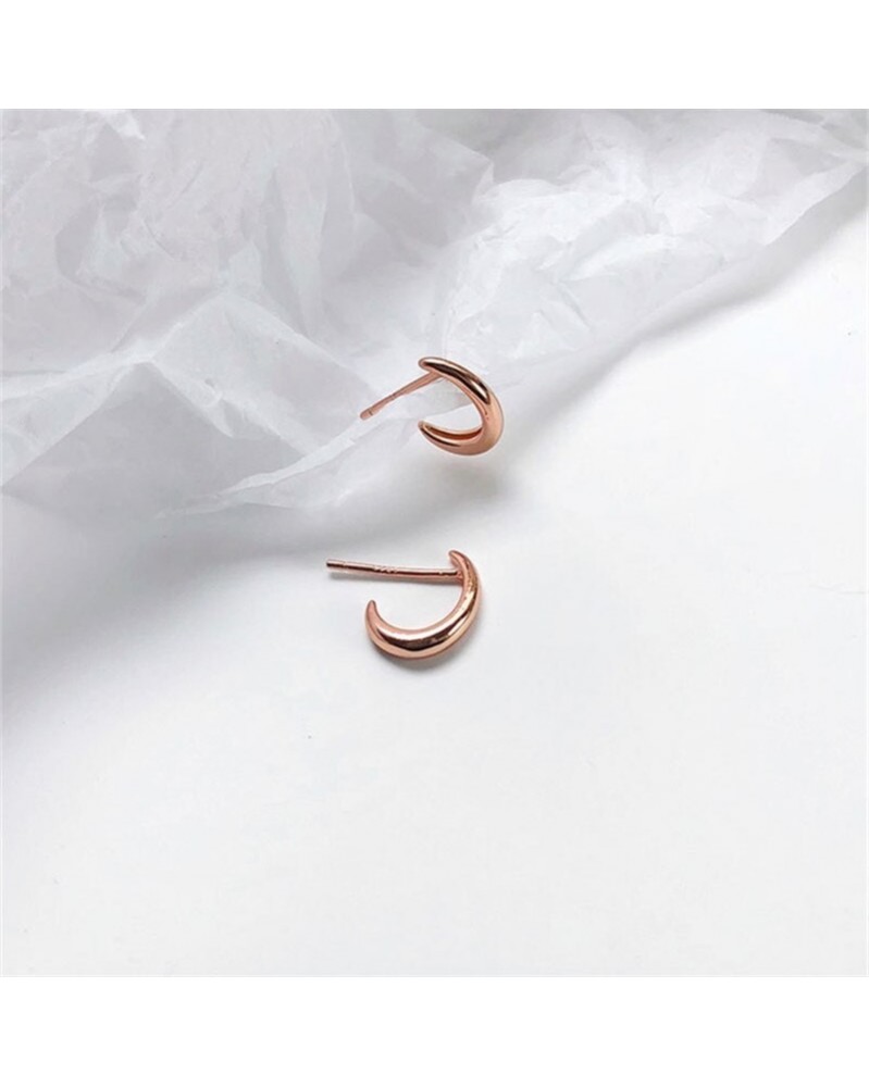 Drágakő színe: rózsa arany - 925 ezüst európai egyszerű ívelt horogív ív félhold fülbevaló női punk hip -hop trend