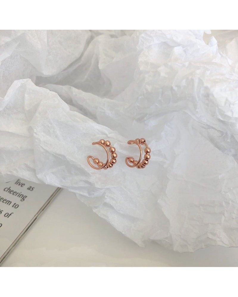 925 ezüst egyszerű kettős rétegű kerek gyöngyök geometriai fülcsont klip nők punk hip -hop utcai művészeti party ékszerek