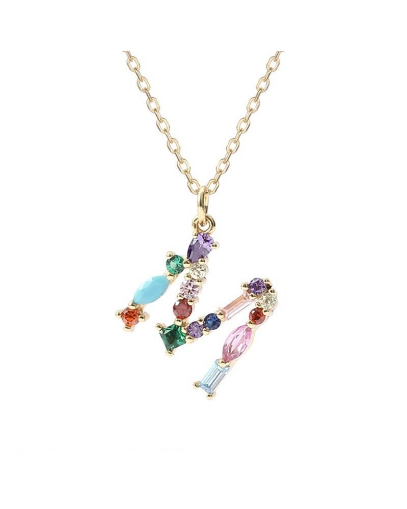 Drágakő színe: M - 925 ezüst európai 26 kezdőbetű medál nyaklánc nők Pavé színes kristály divat party ékszerek