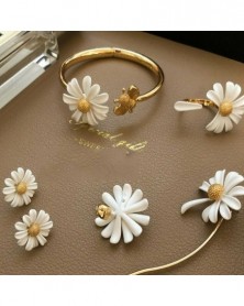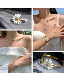 Women Fashion Jewellery Set Small Daisy Flower Necklace Earring Ring Bangle Set