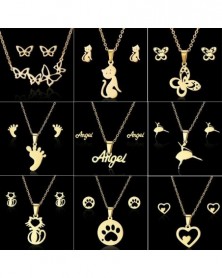 66 Családi szerelem - Rozsdamentes acél női arany ékszer szett fél fülbevalók medál nyaklánc karácsony
