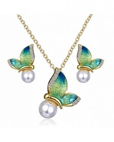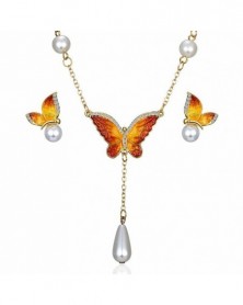 Sárga varázsú pillangó - Női divat kristály gyöngy zománc pillangó nyaklánc Stud fülbevaló ékszer szett