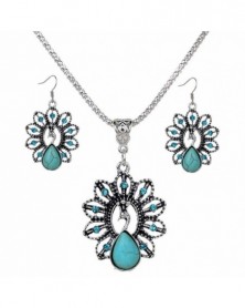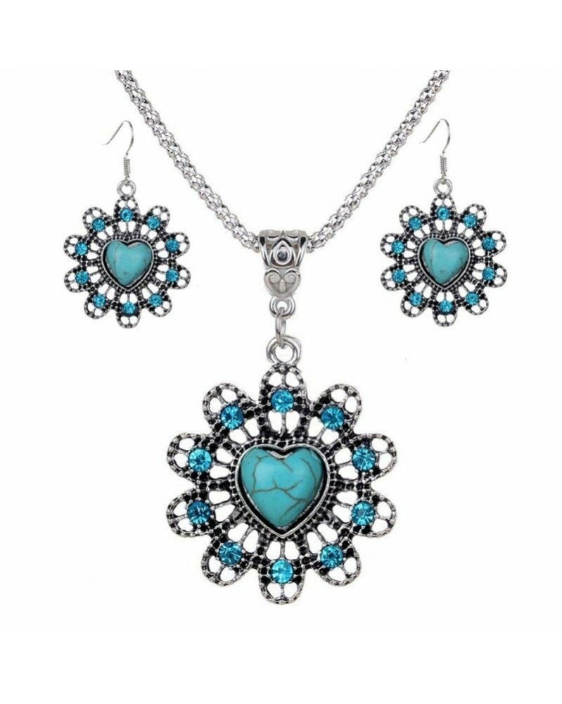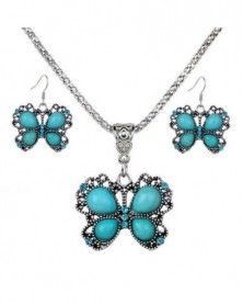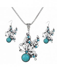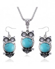 * 1-Szív - Retro női türkiz pillangó bagoly szív nyaklánc medál fülbevaló ékszer szett