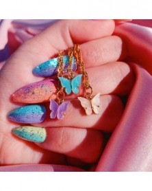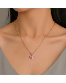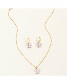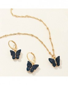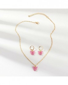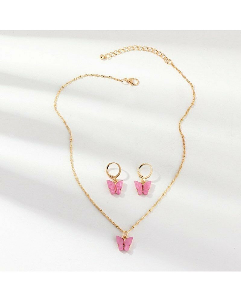 Sötét rózsaszín - Divat pillangó akril kulcscsont medál nyaklánc fülbevaló női ékszer szett