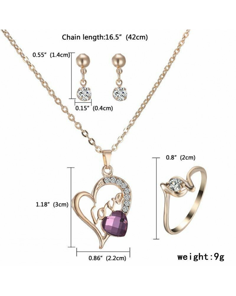 * 29-Arany szerelem - Varázsa kristály strasszos szív üreges nyaklánc fülbevaló ékszer készlet esküvői ajándék