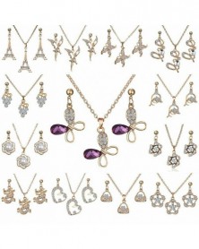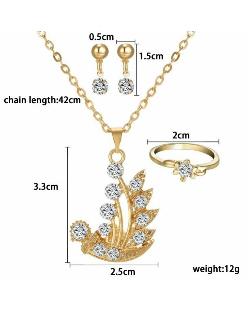 * 18-Arany levél - Varázsa kristály strasszos szív üreges nyaklánc fülbevaló ékszer készlet esküvői ajándék