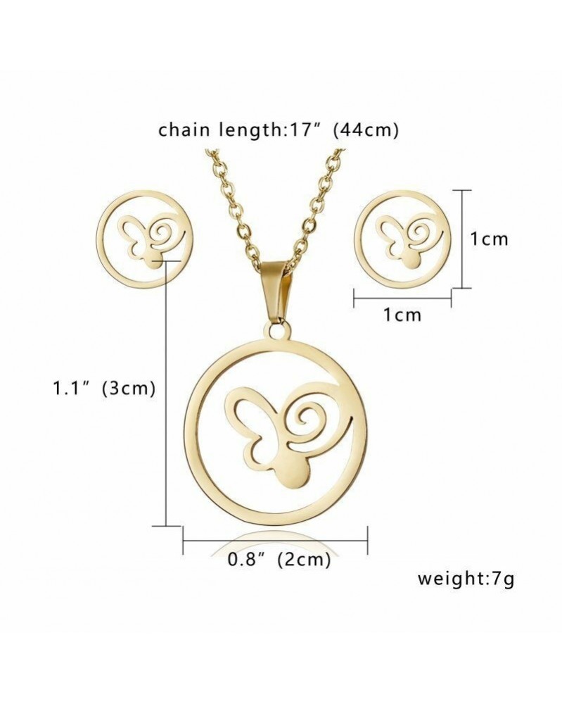 Arany üreges pillangó * 52 - Divat női arany rozsdamentes acél ékszer szett nyaklánc fülbevaló esküvői party