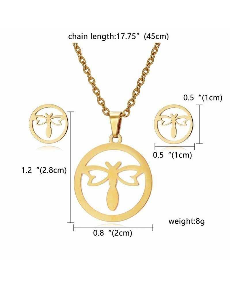 44. arany szitakötő - Divat női arany rozsdamentes acél ékszer szett nyaklánc fülbevaló esküvői party