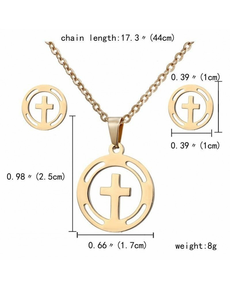 Arany kereszt * 7 - Divat női arany rozsdamentes acél ékszer szett nyaklánc fülbevaló esküvői party