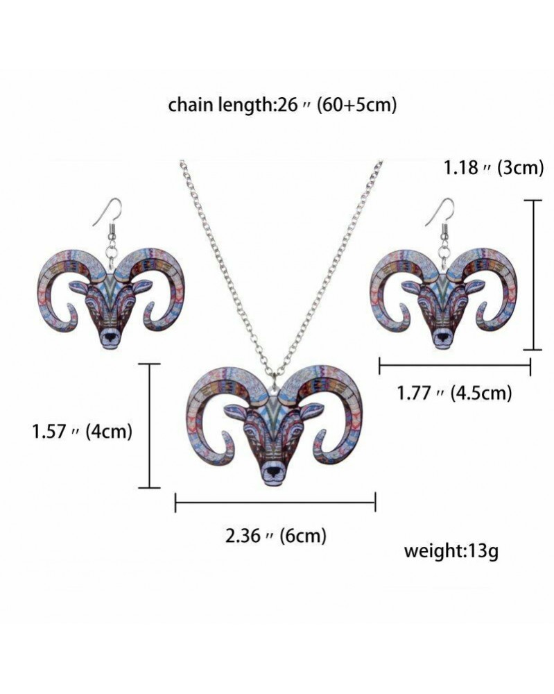 Antilop - Retro állat bagoly elefánt oroszlán akril medál nyaklánc fülbevaló ékszer szett