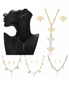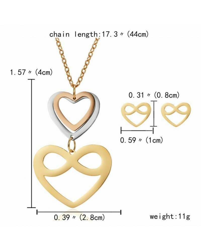 " 8" szív - Női rozsdamentes acél üreges medál nyaklánc fülbevaló ékszer szett báj ajándék