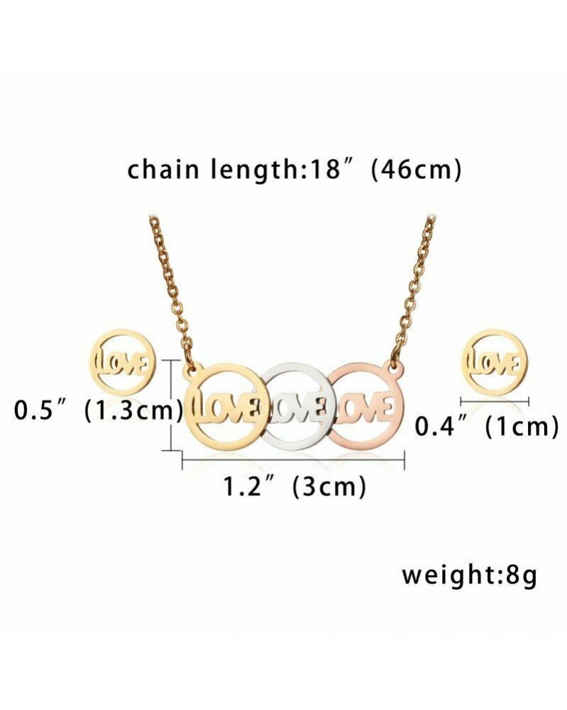 szerető kerek üreges - Női rozsdamentes acél üreges medál nyaklánc fülbevaló ékszer szett báj ajándék