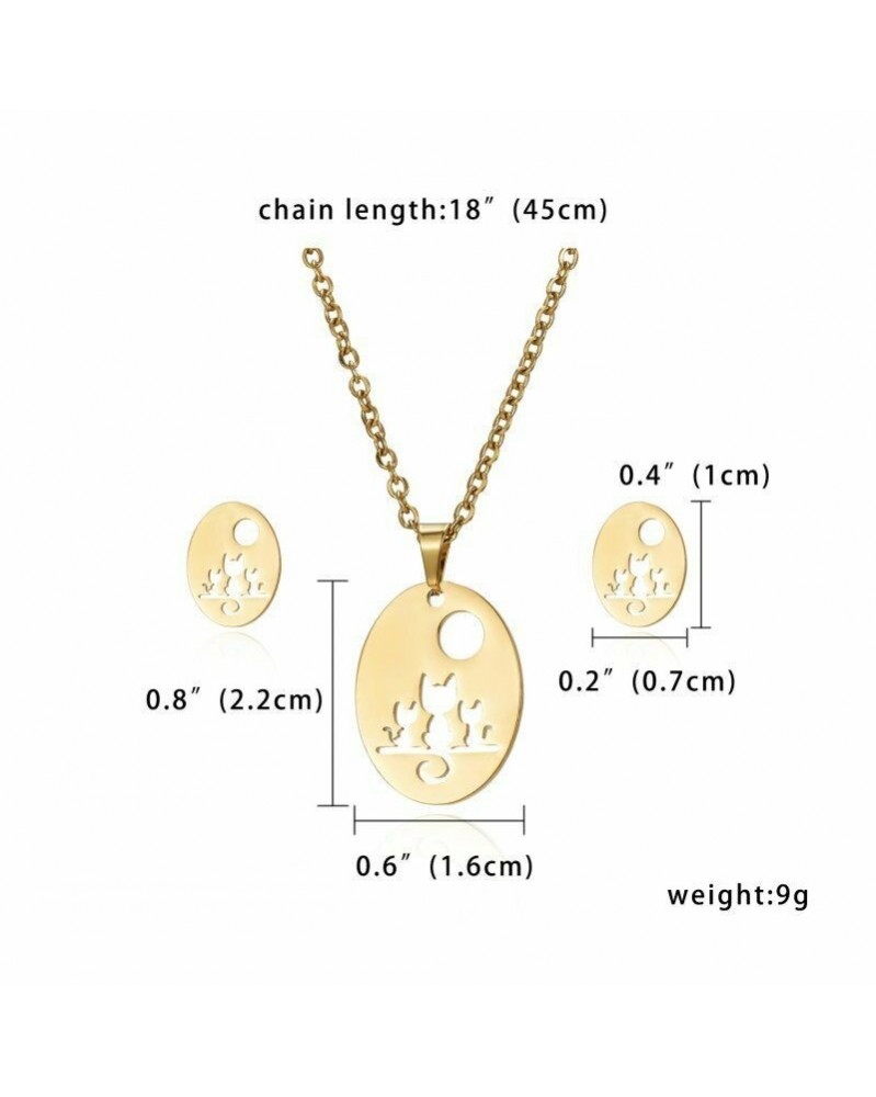 Három macska - Új divat rozsdamentes acél arany szép állat macska fülbevaló nyaklánc ékszer szett