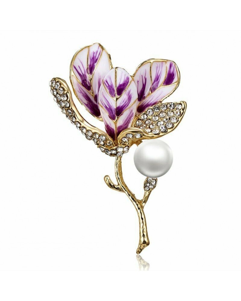 (* 21) - Lila gyöngyvirág - Divat esküvői nők kristály gyöngy zománc virág növény bross pin party ékszerek