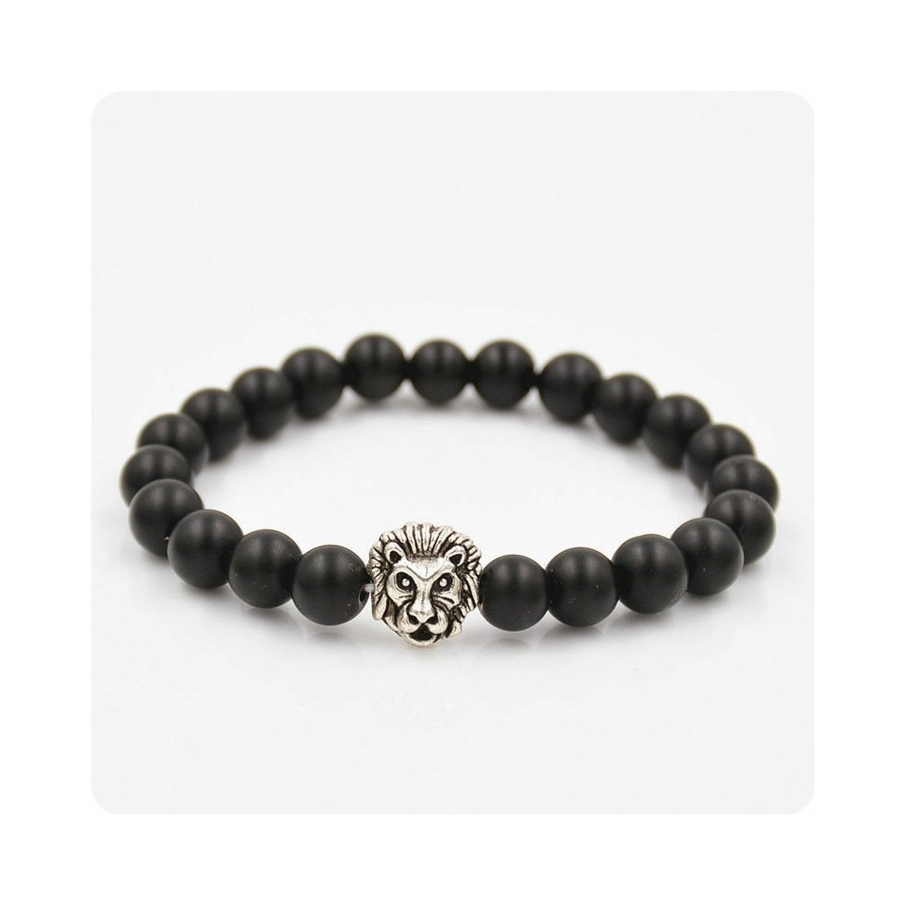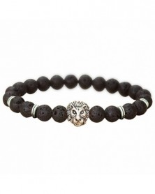 Ezüst 2 - Férfi divat fekete láva kő arany és ezüst oroszlán gyöngyös mandzsetta báj karperec karkötő