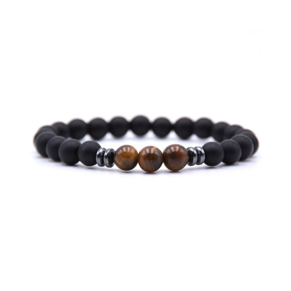 * 22 - Férfi divat fekete láva kő arany és ezüst oroszlán gyöngyös mandzsetta báj karperec karkötő