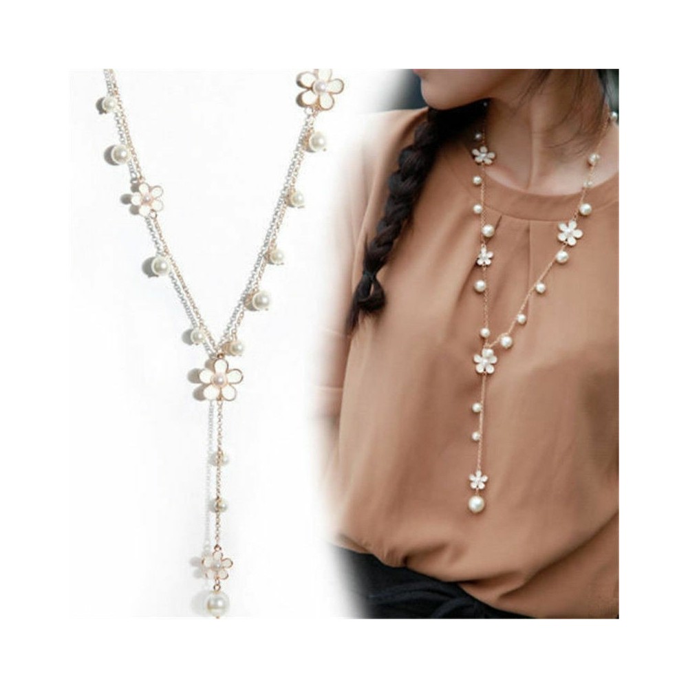 * 51 Fehér virág - Boho női többrétegű hosszú lánc medál Crystal Choker nyaklánc ékszer ajándék