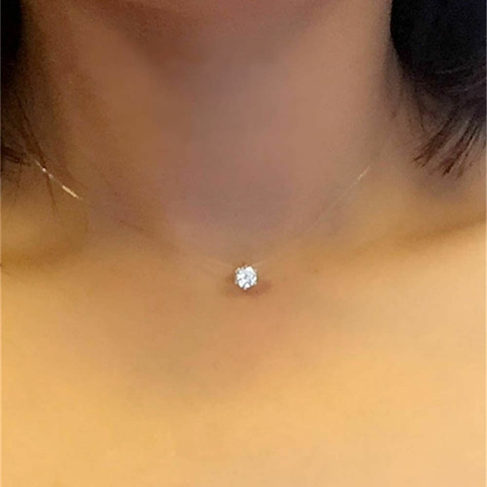 * 68 Crystal Invisible Line Zir ... - Boho női többrétegű hosszú lánc medál Crystal Choker nyaklánc ékszer ajándék