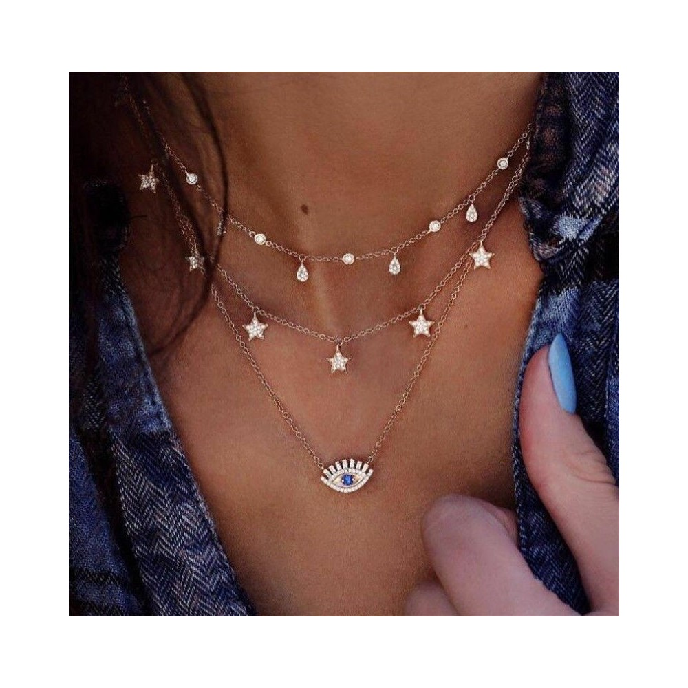 * 21 Többrétegű arany kristály Cl ... - Boho női többrétegű hosszú lánc medál Crystal Choker nyaklánc ékszer
