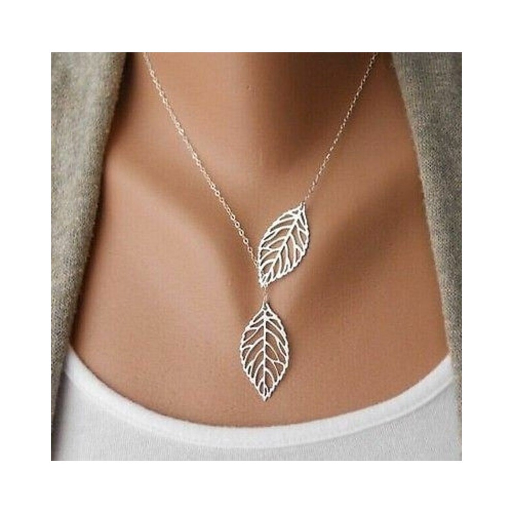 * 65 Ezüst nagy levelek - Boho női többrétegű hosszú lánc medál Crystal Choker nyaklánc ékszer ajándék