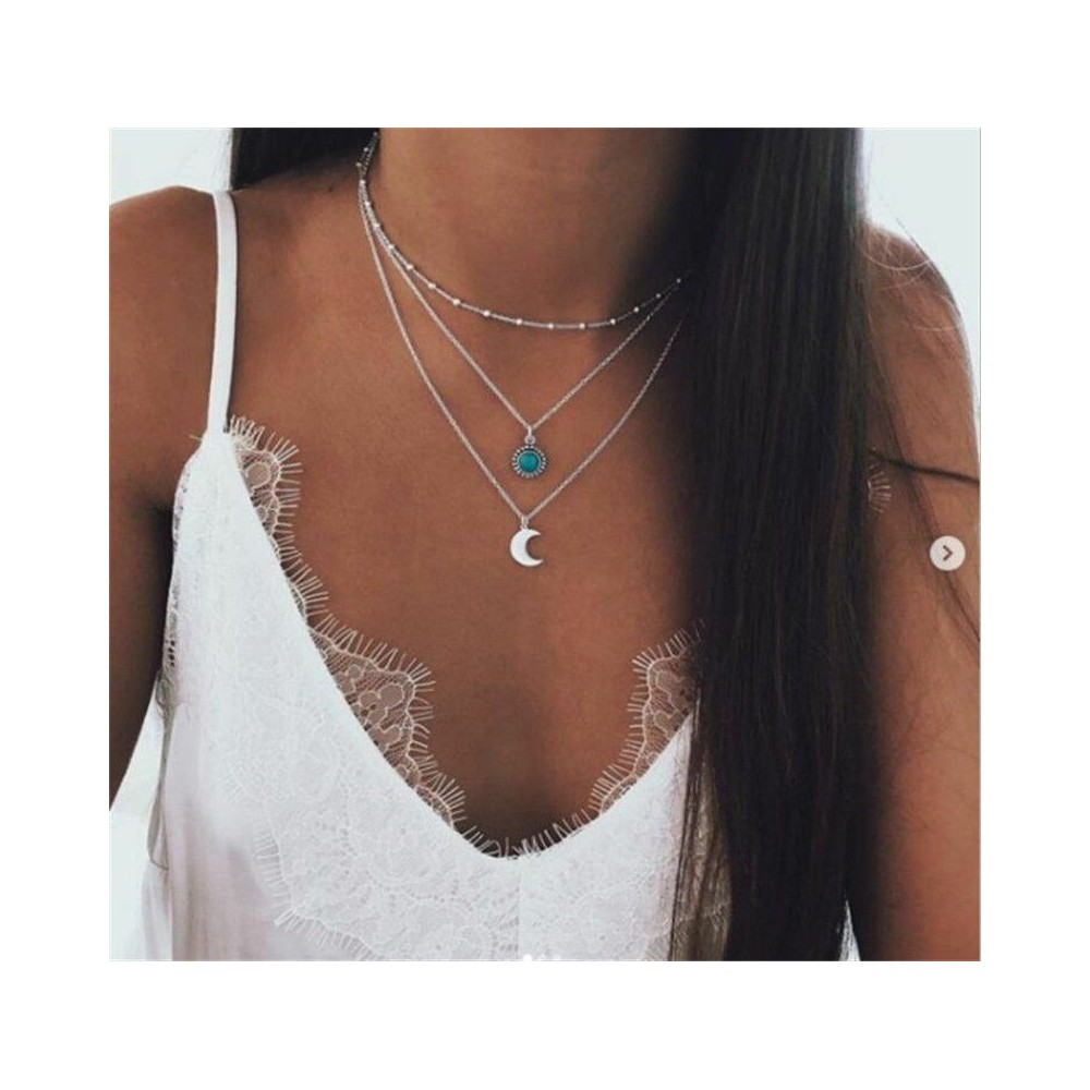 * 23 Türkiz Hold láncfojtó ... - Boho női többrétegű hosszú lánc medál Crystal Choker nyaklánc ékszer ajándék