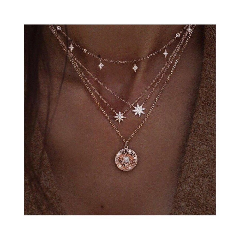 * 32 Choker csillag kristálylánc ... - Boho női többrétegű hosszú lánc medál Crystal Choker nyaklánc ékszer ajándék