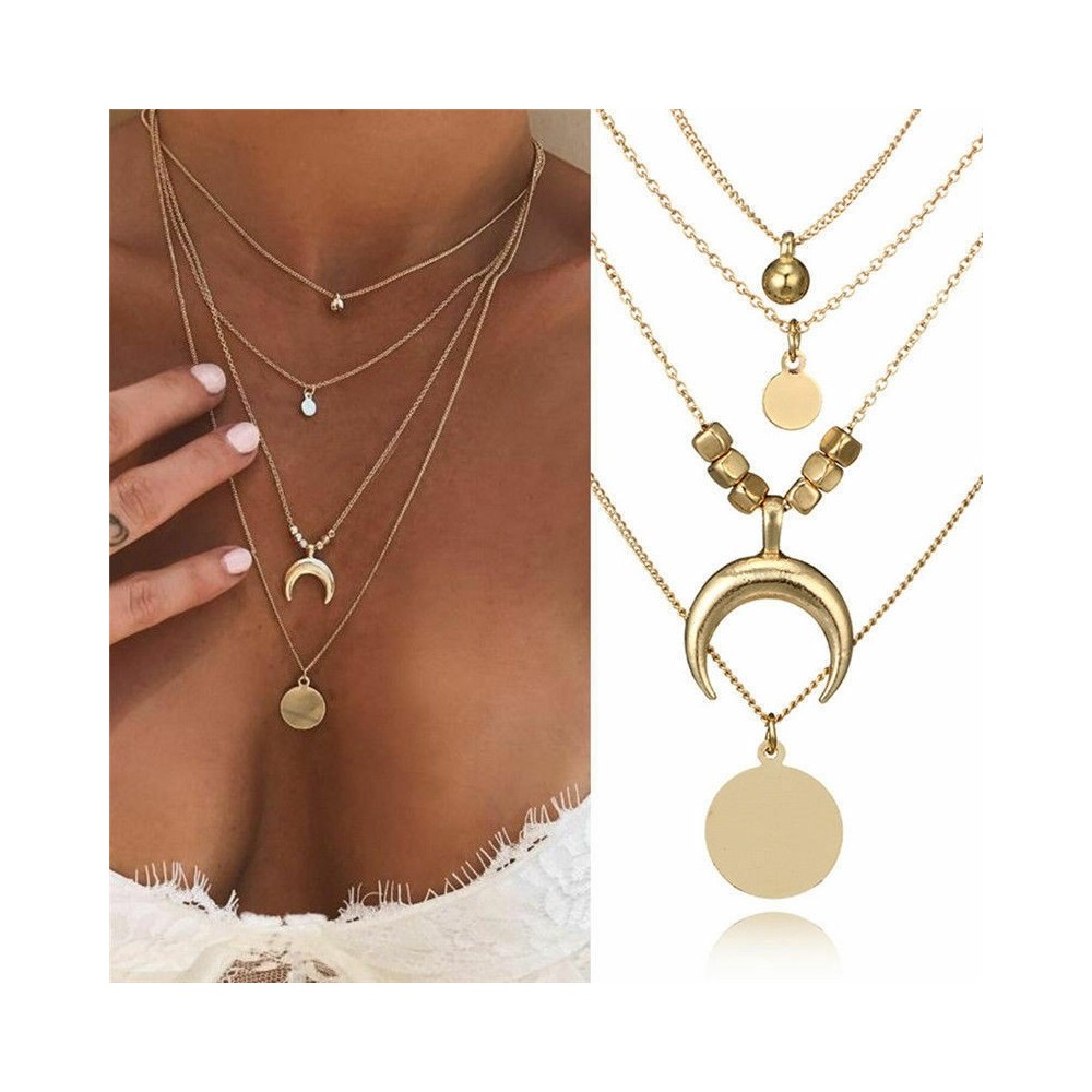 * 11 Arany dísz Hosszú Félhold Moo ... - Divat női többrétegű kulcscsont nyaklánc medál bűbájos choker lánc ékszer