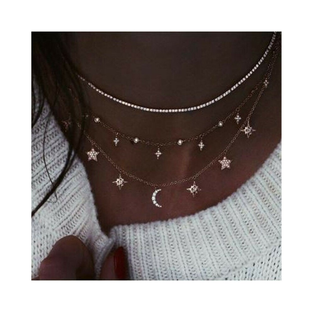 * 57 - Divat női többrétegű kulcscsont nyaklánc medál bűbájos choker lánc ékszer