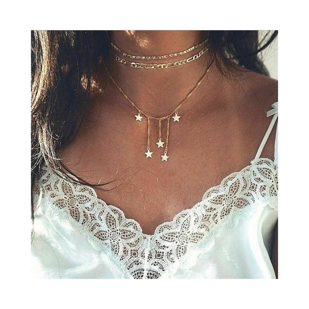 * 18 Többrétegű aranycsillag kristály ... - Divat női többrétegű kulcscsont nyaklánc medál bűbájos choker lánc