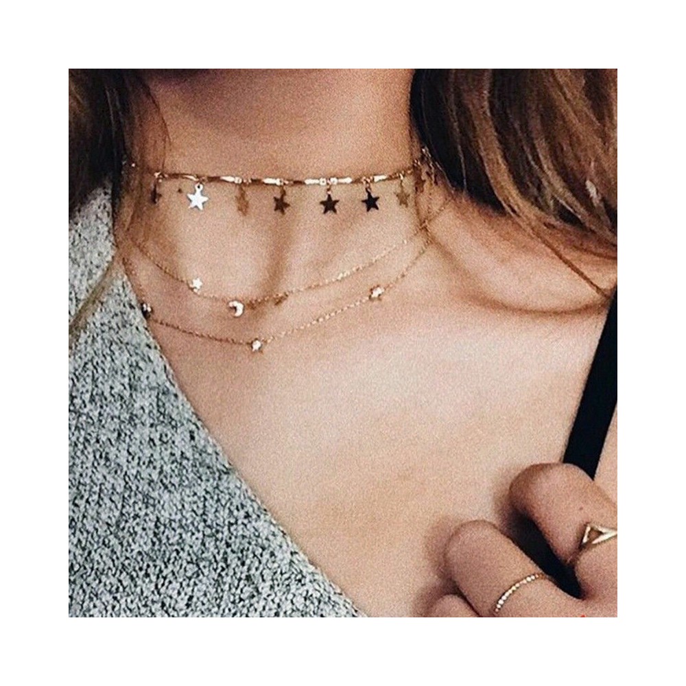 * 71. Egyszerű arany aprócsillagos ... - Divat női többrétegű kulcscsont nyaklánc medál bűbájos choker lánc ékszer