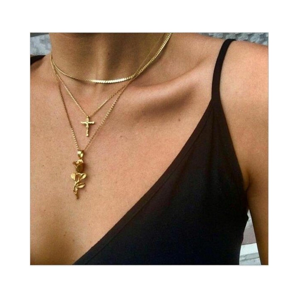 * 5 Boho Simple Gold Chain Cros ... - Divat női többrétegű kulcscsont nyaklánc medál bűbájos choker lánc ékszer