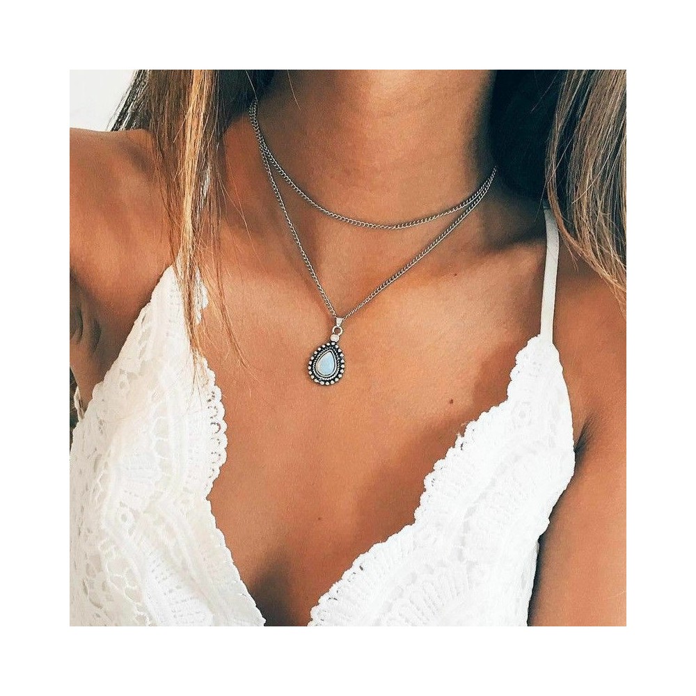 * 61 Retro könnycsepp réteges ... - Divat női többrétegű kulcscsont nyaklánc medál bűbájos choker lánc ékszer