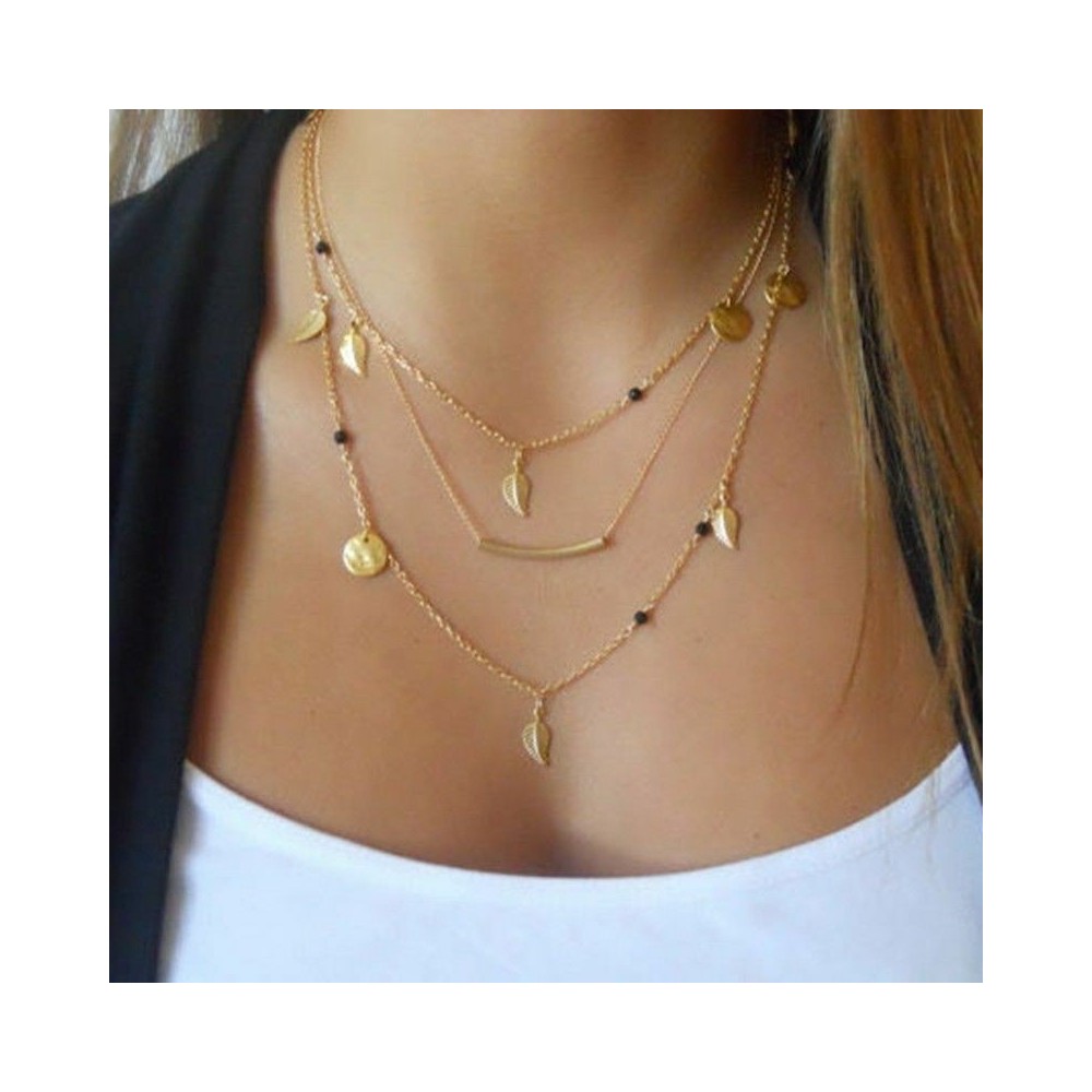 * 23 Három rétegű levél és érme - Divat női többrétegű kulcscsont nyaklánc medál bűbájos choker lánc ékszer