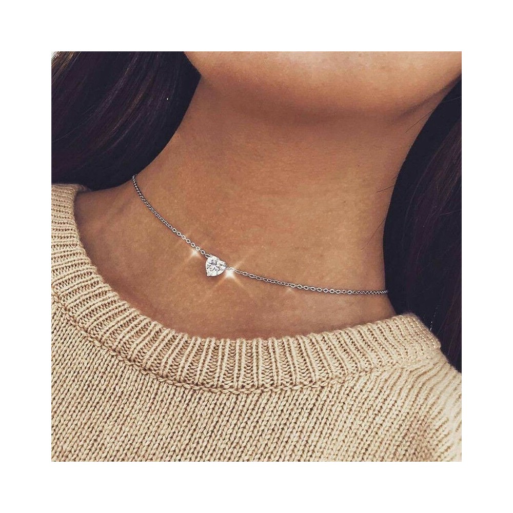 * 2 Ezüst cirkon kristály szív ... - Divat női többrétegű kulcscsont nyaklánc medál bűbájos choker lánc ékszer