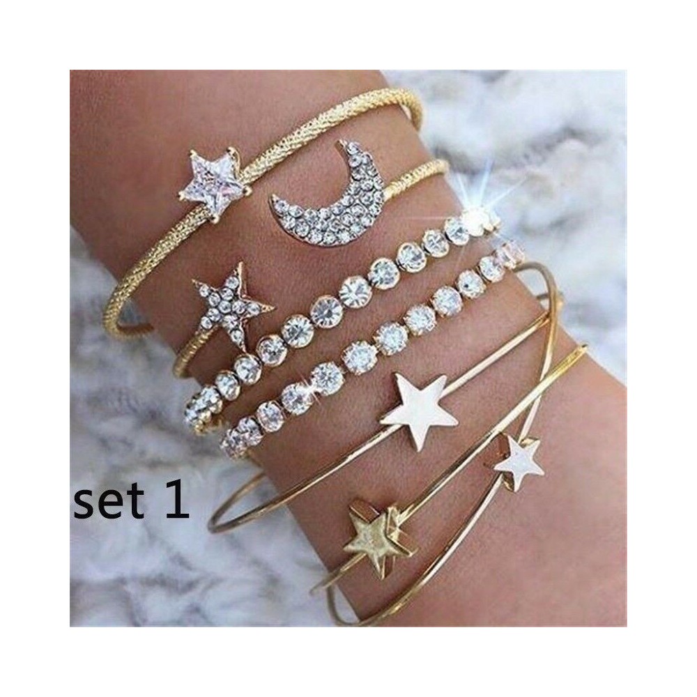 * 8 - Divat női ékszer szett strassz gyöngyös lánc ötvözet karkötő kiegészítők