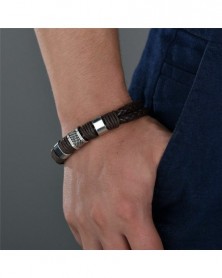 * 5 Fekete - Divat punk nők / férfiak többrétegű pakolás bőr fonott mandzsetta karkötő karszalag