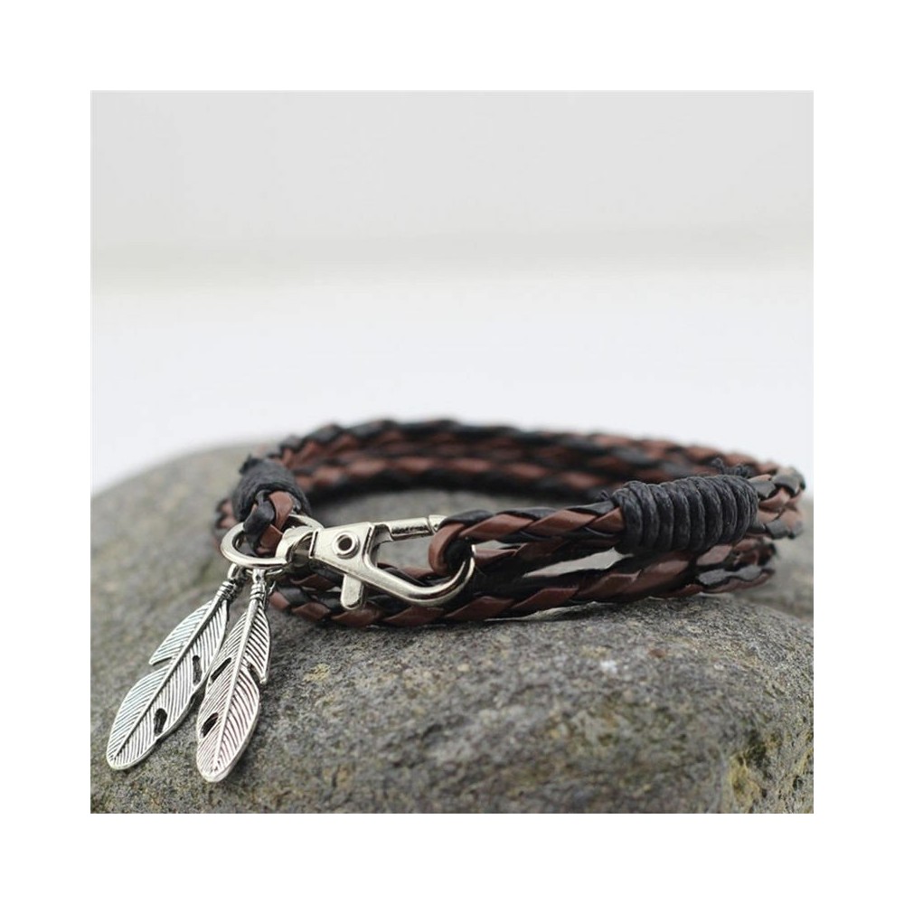 * 5 Fekete Barna - Divat punk nők / férfiak többrétegű pakolás bőr fonott mandzsetta karkötő karszalag