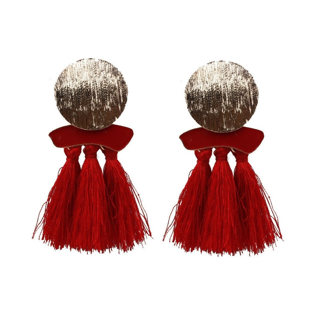 Piros - Női geometriai kerek pamut bojt dangle csepp party fül fülbevalók ékszerek