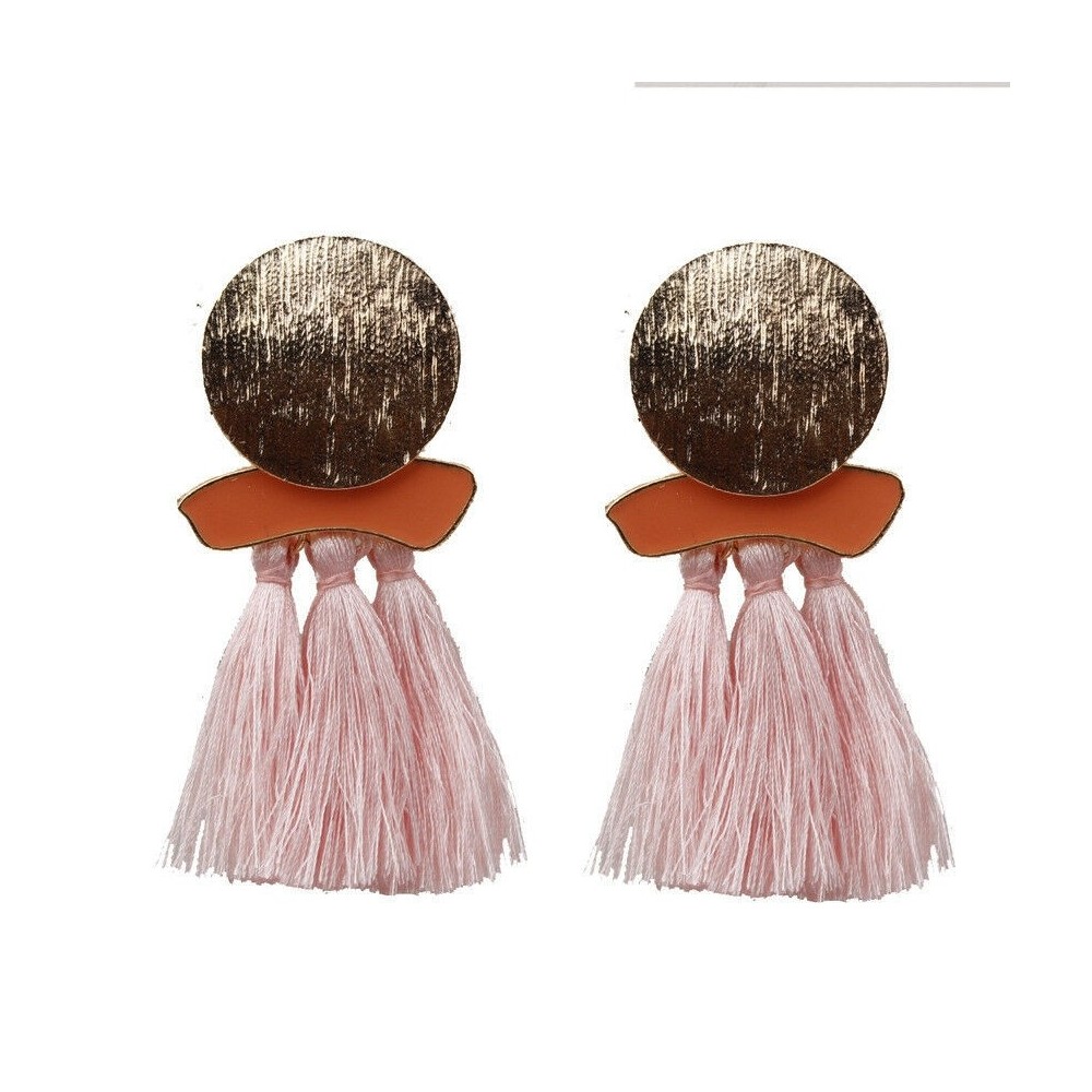 Rózsaszín - Női geometriai kerek pamut bojt dangle csepp party fül fülbevalók ékszerek