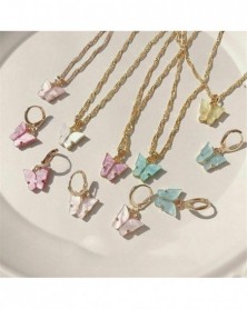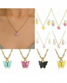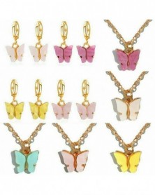 Fehér (fülbevaló nyaklánc szett) - Candy színes pillangó medál nyaklánc fülbevaló női kulcscsont lánc ékszer