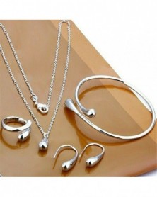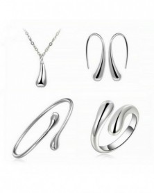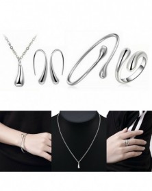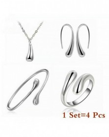 Ezüst - 4db / készlet divat női 925 esküvői csepp nyaklánc karkötő fülbevaló gyűrű ékszerek