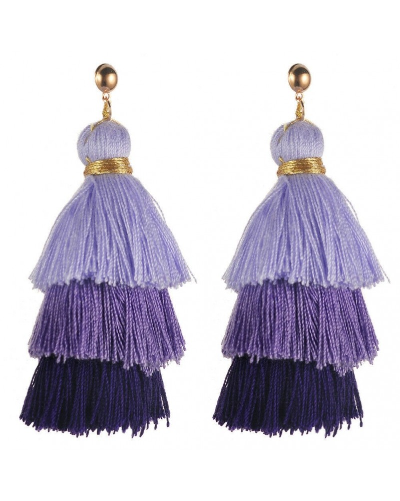 * 13 Lila - Női színes bohém fülbevalók nyári hosszú bojt béren kívüli Boho Dangle fülbevalók