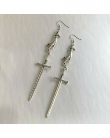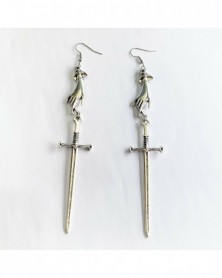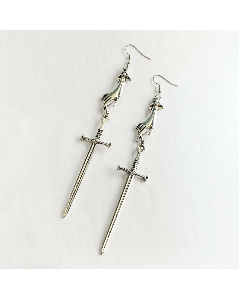 Nincs szín - Nagy kard fülbevalók ezüst, kézi fülbevalók, gótikus fülbevalók, középkori fülbevalók