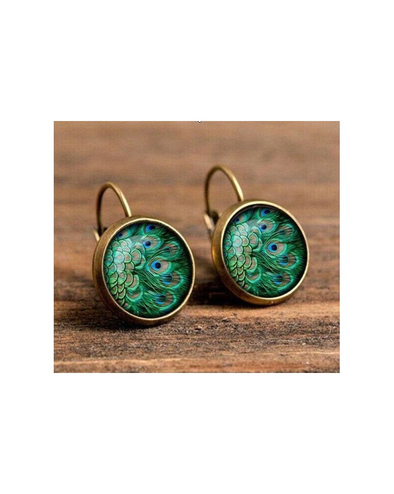Nincs szín - PEACOCK bronzüveg fülbevaló 18 mm-es kézzel készített fülbevalók ékszerek GB04