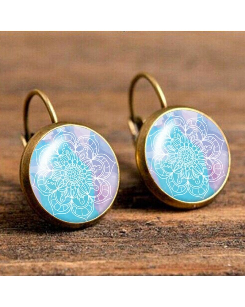 Nincs szín - India MandalaGlass cabochon (18mm) karos hátsó fülbevaló bronz női ékszerek * 213