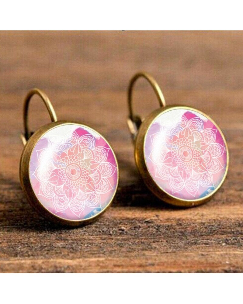 Nincs szín - India MandalaGlass cabochon (18mm) karos fülbevalók bronz női ékszerek * 216