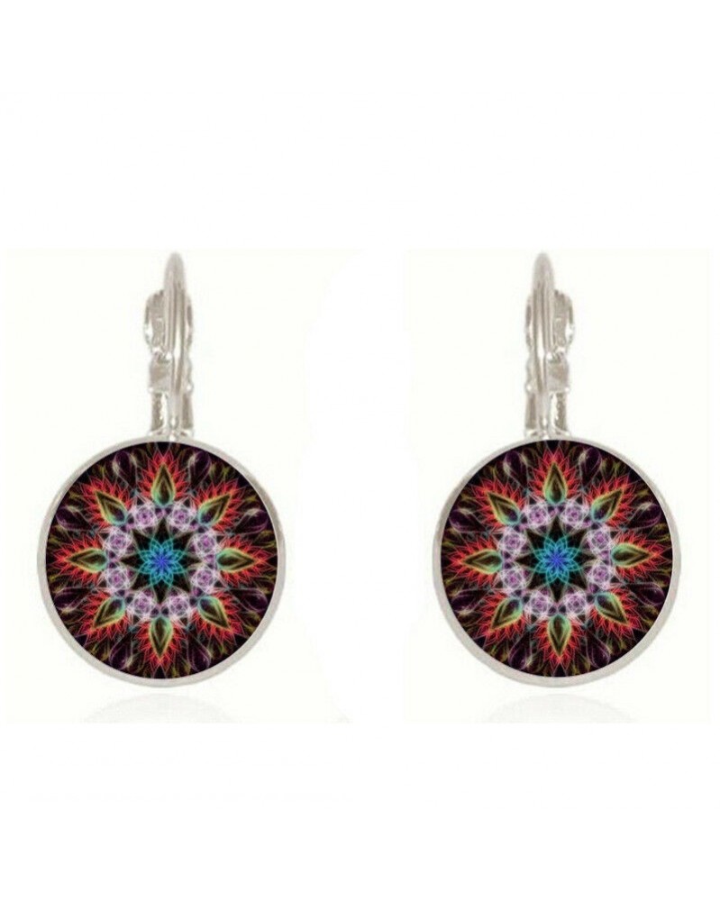 Nincs szín - 2018 Mandala Glass cabochon (18MM) karos fülbevalók ezüst női ékszerek GB-175